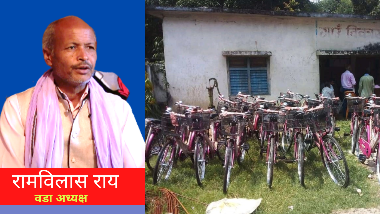 ‘बेटी पढाउ, बेटी बेटी बचाउ, अन्तर्गत वडा अध्यक्ष रामविलास यादवले कक्षा ८ मा अध्यनरत क्षात्राहरुलाई साईकल वितरण गर्नु भएको हो |