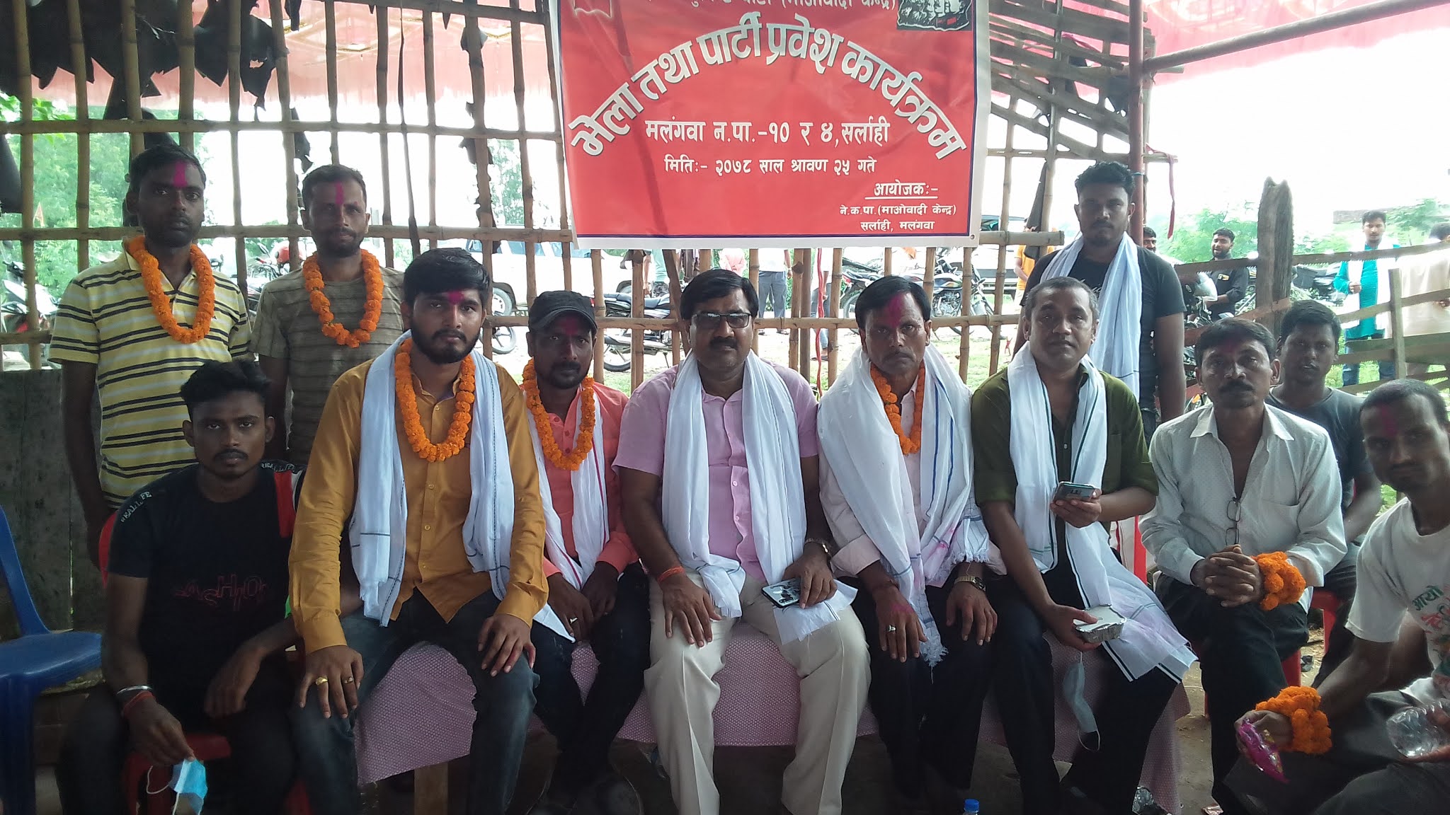 आज भएको कार्यकर्ता भेला तथा पार्टी प्रवेश कार्यक्रममा मलंगवा न.पा वडा न-४ र १० का नेता तथा कार्यकर्ताहरु विभिन्न पार्टीहरु परित्याग गरी पार्टीका सर्लाही जिल्ला कमिटी सदस्य एवं कार्यक्रमका अध्यक्ष नविराज खानको पहलमा माओवादी केन्द्रमा प्रवेश गरेका छन् । नव प्रवेसीहरुलाई कार्यक्रमका प्रमुख अतिथि पार्टीका सर्लाही जिल्ला कमिटी सचिव कमल बुढाथोकी तथा वडा न-४ का वडा कमिटी अध्यक्ष राम दरेश राय र वडा न-१० का वडा कमिटी अध्यक्ष राम विश्वास महतोले संयुक्तरूपमा फुलको माला र टीका लगाई स्वागत गरेका छन् ।